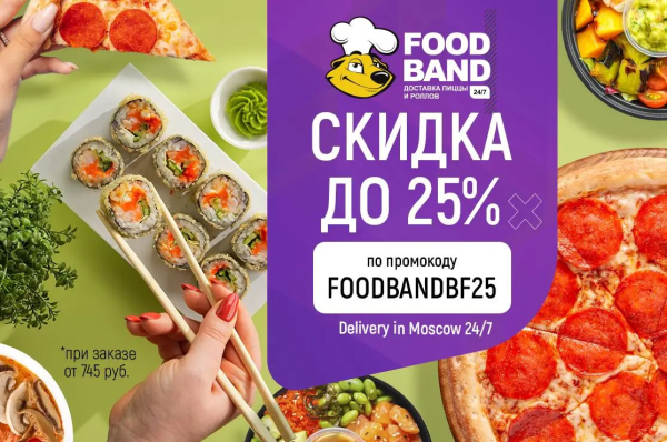 FOODBAND — это больше 30 видов пиццы, а также разнообразные поке, роллы, вок-супы и многое другое.