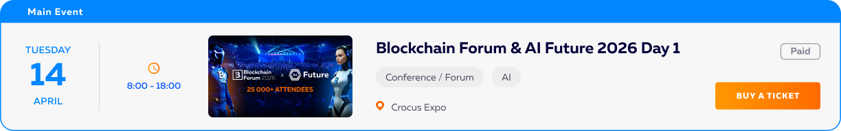 Blockchain Forum & AI Future Week 2026 is a week of various independently organised side events around Blockchain Forum & AI Future Moscow, running from 10 – 19 April 2026.